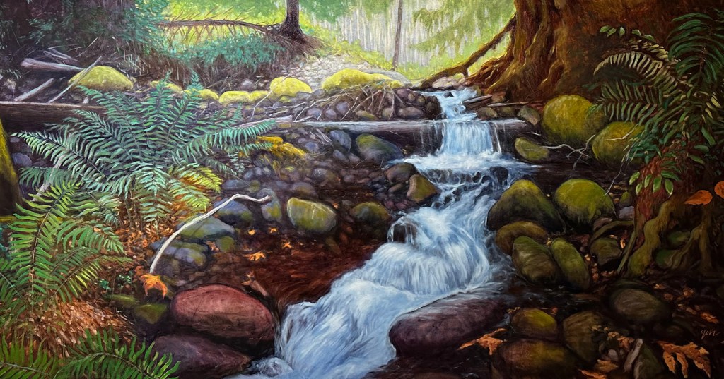 Oil on canvas 36” x 72” Near Dry Creek Falls Trail, Cascade Locks, Oregon – Columbia River Gorge National Scenic Area
